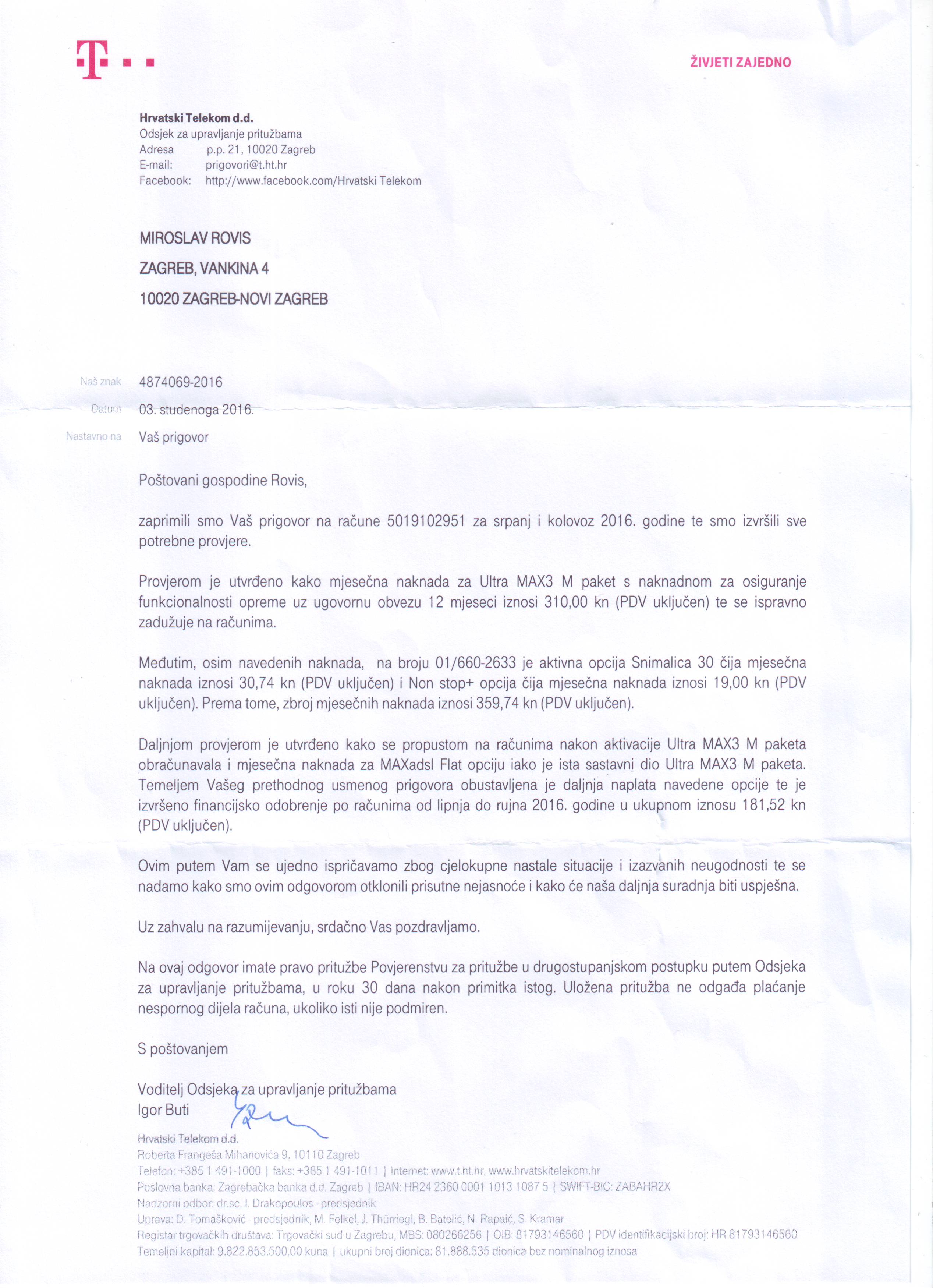 pravilnom odgovoru na moj prigovor ( T-com_161103_IgorButi.jpg ).
